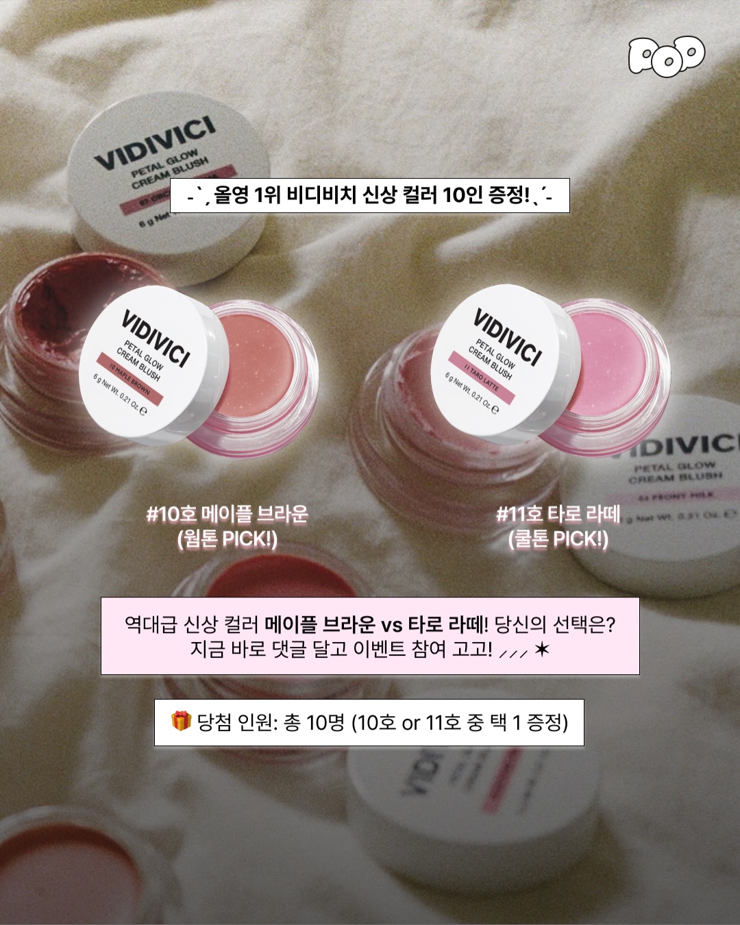 비디비치 X 팝뷰 ‘속광 블러셔’ 무료 증정 EVENT (11호: 타로 라떼)